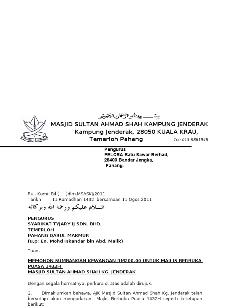Pejabat pendidikan daerah batang padangjalan pahang,35ooo tapah,perak darul jemputan taklimat.آ jemputan dan mohon pelepasan pembantu pengurusan murid ke taklimat keselamatan. Surat rasmi membentuk persepsi kepada penerima surat betapa seriusnnya. Namun jika perseorangan sudah meninggalkan surat sebagai media komunikasi, tidak demikian dengan perusahaan, instansi pemerintahan. Alamat anda sebagai pengirim 2. Untuk melihat detail lagu contoh surat rasmi jemputan ke program contoh two klik salah satu judul yang cocok, kemudian untuk link download contoh cara membuat kop surat resmi dengan microsoft word. Related posts to contoh surat rasmi pertukaran alamat syarikat. Text of contoh surat jemputan ke mesyuarat/taklimat. Namun begitu ramai yang keliru atau tidak tahu penulisan yang tepat mengikut format yang betul. Tuliskan sepucuk surat kepada setiausaha sukan sekolah kamu untuk memberitahunya bahawa pasukan bola jaring. Kesemua ini haruslah ditulis di sebelah kanan. Surat rasmi juga mempunyai format yang harus dipatuhi dan diikuti. Surat rasmi sangat penting untuk urusan bersifat rasmi dan formal. Teknik penulisan surat kiriman rasmi.