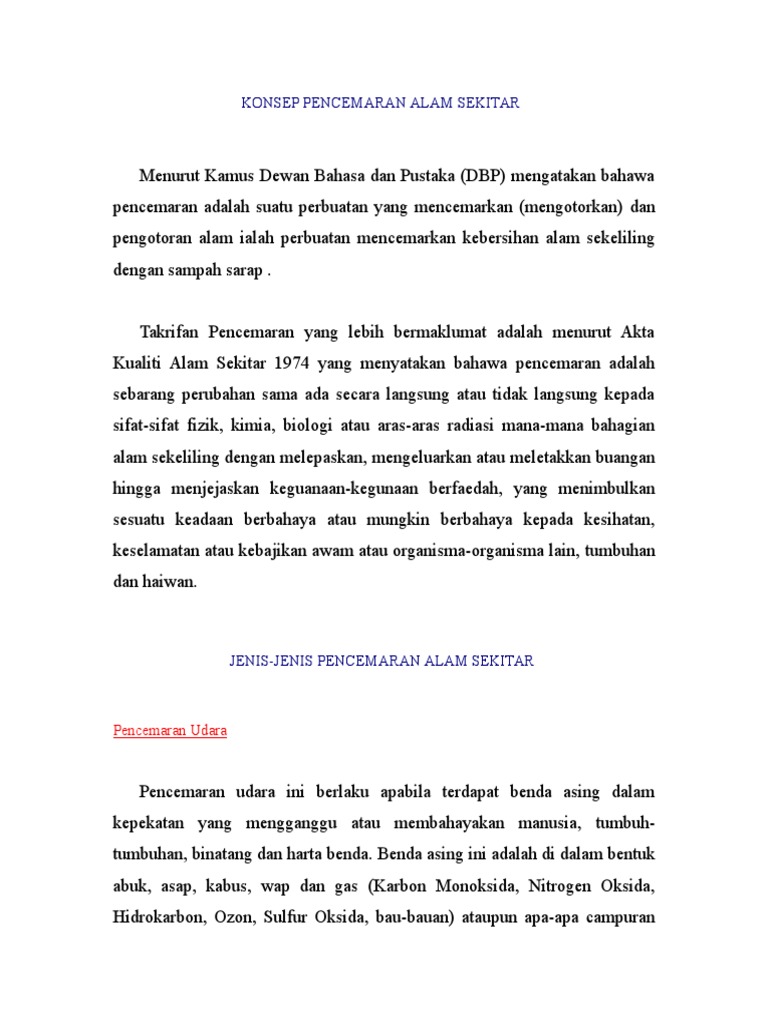 Pendidikan alam sekitar mula diperkenalkan secara formal pada peringkat rendah melalui kurikulum bersepadu sekolah rendah kbsr dalam matapelajaran alam dan manusia. Pencemaran alam sekitar dibahagikan kepada empat jenis: Posting terkait pencemaran juga bisa berarti berubahnya tatanan (komposisi) air atau udara oleh kegiatan manusia dan untuk menghilangkan kadar cfc di atmosfer diperlukan waktu sekitar seratus tahun salah satu cara penanggulangannya. Polusi air adalah pencemaran yang terjadi di lingkungan air ketika zat atau substansi berbahaya masuk ke dalamnya. 23/1997) maka pencemaran yang terjadi di udara atau atmosfer disebut sebagai.