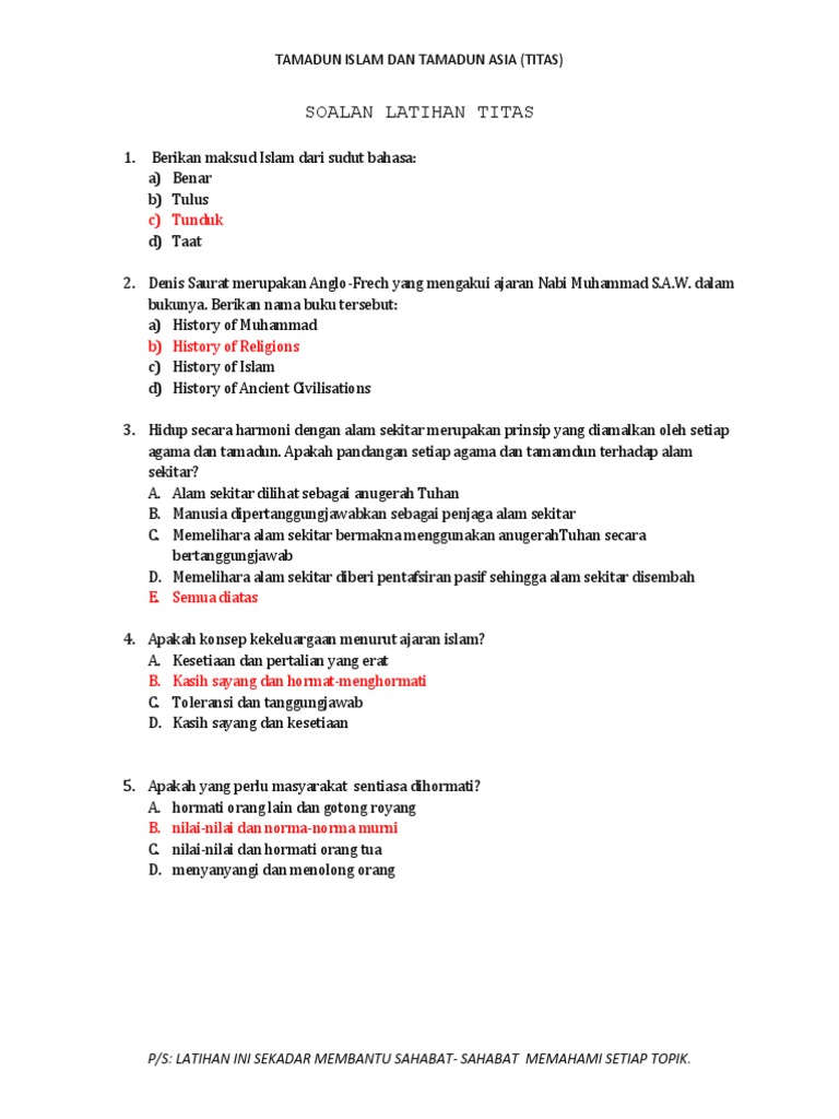 Titas ujian 1 compress mpu321 studocu. Mpu3123 titas quiz minggu question interaksi budaya merupakan salah satu daripada jenis interaksi peradaban yang paling jelas berlaku dalam banyak tamadun. Pendapat ini telah ditegaskan oleh ibn khaldun. I, ii dan iv question 8 Iii.iii.kesengsaraan hidup mendorong manusia untuk. Wujud sikap terbuka yang mampu menerima perubahan terutamanya dari segi perubahan permikian atau perubahan dalam skruktur politik, ekonomi dan sosial. Manfaat dan kelebihan pilihan raya; Perletakan jawatan sesetengah pemimpin berlaku disebabkan tekanan oleh gol ongan rakyat. Memiliki moral dan nilai yang terpuji. Masa percobaan contoh surat perjanjian kerja karyawan Tinggalan sejarah seperti batu makhluk bersurat di palembang (683 m) dan pulau bangka (686 m) adalah bukti 20. Kejadian gempa bumi dan bencana alam seperti tsunami. Prinsip agung yang merangkumi keseluruhan dari mana asalnya a.